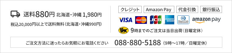 お電話でのご注文・お問い合わせは088-880-5188(9時~17時/日曜定休)