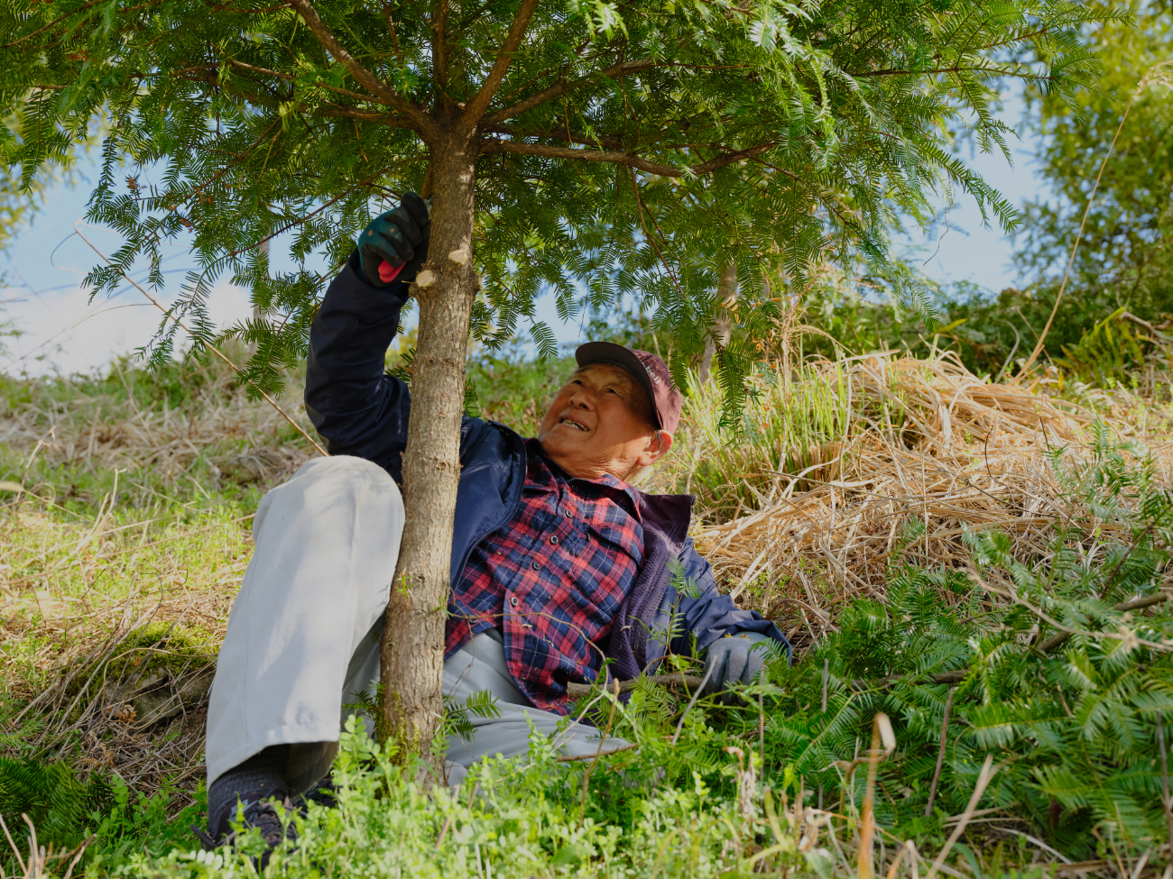 榧への取り組みは、お父ちゃんの囲碁好きが高じて40数年前より碁盤を集め始めたことがきっかけです。榧は、碁盤や将棋盤の最高級品で、木肌の美しさや打ち味・香りなどとても素晴らしく、その魅力にすっかり引き込まれました。それからは、国内外から榧材を買い集めて碁盤をつくるようになり、早朝から深夜まで没頭することも。そんな中、日本の榧が絶滅に近いことを知り、「このままでは榧がなくなってしまう。碁盤をつくる榧の木を育てたい」と思うようになりました。